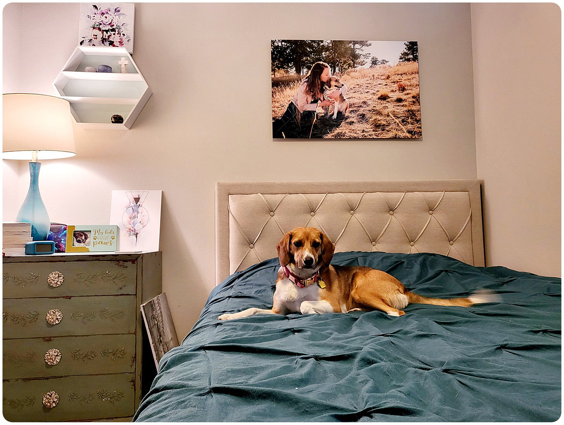 I design custom artwork so your dog’s story is not tucked away on a screen, but woven into your home and your life.